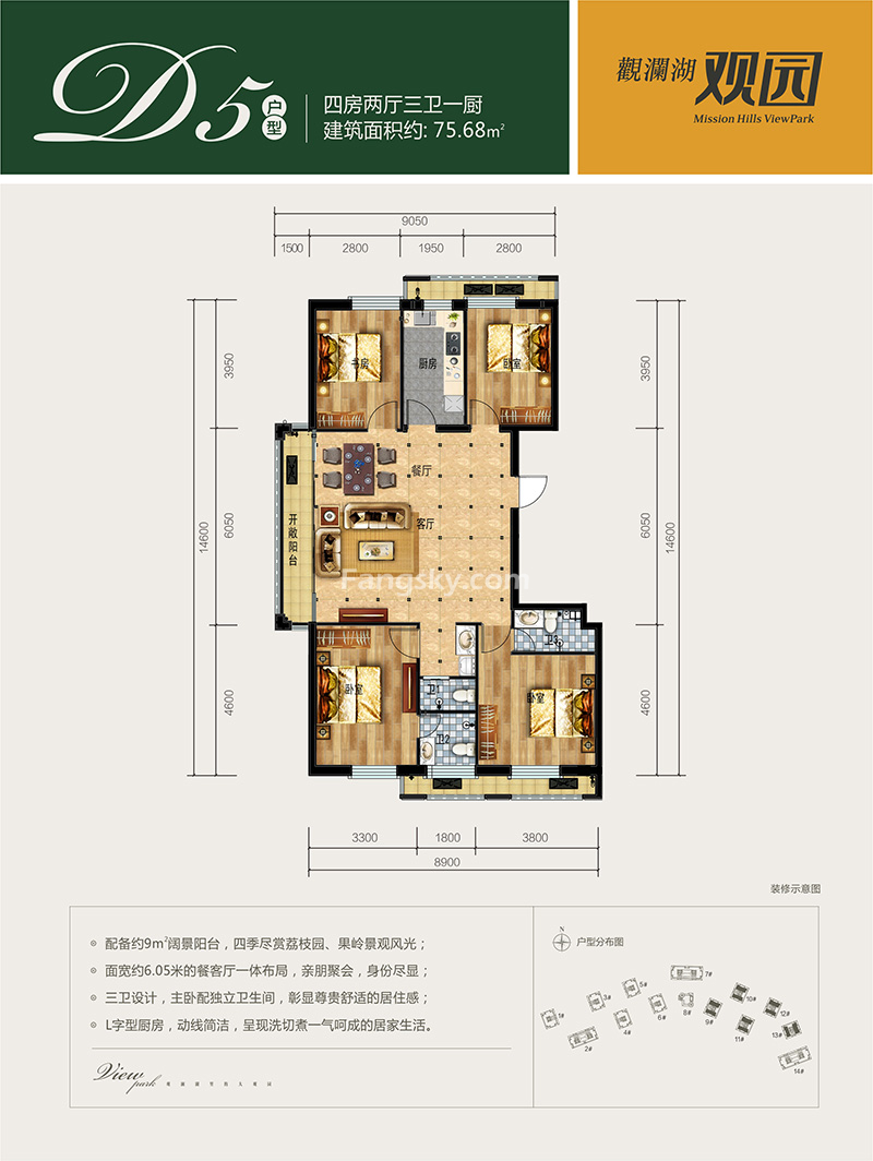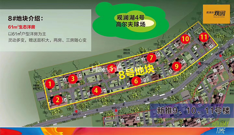 观澜湖观园共由6个地块组成,目前在售1#、2#地块。1#地块由8栋高层住宅和1栋四层多层住宅组成,占地面积9456.22m2,总建筑面积为23479.65 平米,共有291 户,户型面积为77 ㎡左右的两房,2梯2户。2#地块是倾力打造的高品质的多层洋房组团,由10栋多层洋房组成,占地面积11637.58m2,总建筑面积32910.74m2。多层洋房仅80户,户型面积在300平方左右,私家电梯入户,南北通透,户户大花园。所有户型空间灵动性超强,可根据自己的喜好随意打造属于自己的空间。